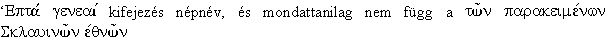 A zavart a szövegben nyilvánvalóan az okozza, hogy Theophanes forrásában összetévesztette a har6.gif (1304 bytes)’dél’ szóval, holott a „Beregaba szorosának elejétől” kifejezés megfelelőjeként egy helymegjelölésnek kellene állnia, éspedig éppen a Mesembria helynévnek. Mindezt figyelembe véve Theophanes szövegének helyes formáját könnyen helyreállíthatjuk a következő módon: har7.gif (4602 bytes) = „uralmuk alá vetve a körülöttük lakó szláv népeket és szerződéses viszonyban állva a Hepta geneai ’Hét törzs’ nevű (néppel), a severeket Beregaba szorosának elejétől a kelet felé, Mesembriáig terjedő részekre, nyugat felé Abariáig pedig a többit, a Hepta geneai-t telepítették, akik (velük) szerződéses viszonyban állottak.”